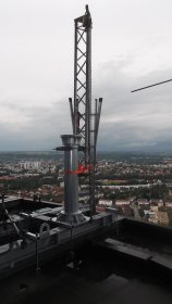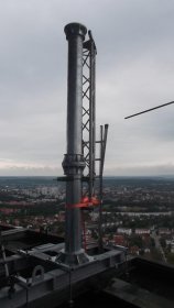 Befestigen von Antennenträgern auf Dächern, an Wänden und auf Plattformen von Fernmeldetürmen. Verhebung mit Autokran oder Seilwinde. Montage von kpl. Technikgrundrahmen auf Hochhäusern inkl. Ausführung der Dachdeckerleistungen. Montage von Spannbandhalterungen an Antennenmasten.