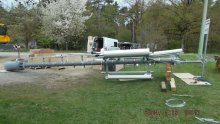 Montage / Stocken schwerer Rohrmaste mittels Trapezhilfsmast.